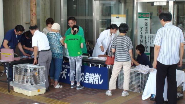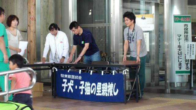 平成27年8月9日(日) 御殿場市役所前駐車場で 子犬・子猫の幸せ探しを開催しました 本日は、11頭のネコちゃんが 幸せを見つけることができました。 猛暑が続く中、参加していただいた 皆様に御礼申しあげます。 次回は、10月18日沼津市で開催します。